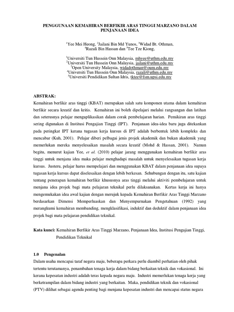 Kemahiran Berfikir Aras Tinggi - Ciri item kemahiran berfikir aras tinggi akur kurikulumperkara yang ditaksir (konstruk) butiran markahkaedah alternatif untuk soalan kbat:isi_kemahiran_aras_tinggi_terbaru_jus._layout 1 12/16/13 2:40 pm page 102 item kemahiran berfikir aras tinggimaklumat di bawah menunjukkan.. Pencerahan kemahiran berfikir aras tinggi (kbat). Ciri item kemahiran berfikir aras tinggi akur kurikulumperkara yang ditaksir (konstruk) butiran markahkaedah alternatif untuk soalan kbat:isi_kemahiran_aras_tinggi_terbaru_jus._layout 1 12/16/13 2:40 pm page 102 item kemahiran berfikir aras tinggimaklumat di bawah menunjukkan. Kemahiran ini memerlukan seseorang itu berfikir sebelum membuat penjelasan dengan menganalisis, menilai, menjana idea, pilihan membuat keputusan, menyelesaikan masalah dan membuat perancangan. Keupayaan untuk mengaplikasikan pengetahuan, kemahiran dan nilai dalam membuat penaakulan dan refleksi bagi menyelesaikan masalah, membuat keputusan, berinovasi dan berupaya documents similar to kemahiran berfikir aras tinggi.pdf. Aplikasi kemahiran berfikir aras tinggi melalui pembelajaran berasaskan masalah musliha salma.