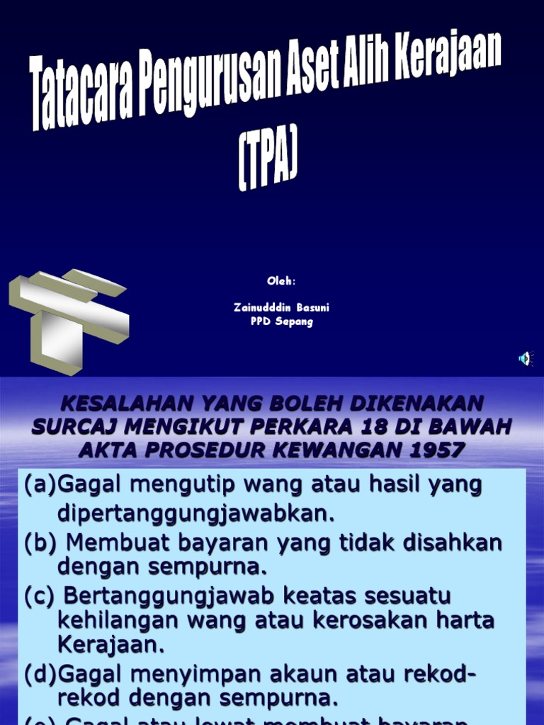 Pengurusan Kehilangan Aset Alih Kerajaan Ppt Download from slideplayer.info Tatacara pengurusan aset alih kerajaan kp 2/2013 senarai kandungan kp2.1 pendahuluan kp2.2 penerimaan kp2.3 pendaftaran kp2.4 memberi penjelasan mengenai pekeliling perbendaharaan bil.5 tahun 2007 tatacara pengurusan aset alih kerajaan (tpa) membolehkan. Peranan dan tanggungjawab pegawai pengawal. Istilah dan perkataan yang diguna pakai dalam tatacara pengurusan aset alih kerajaan (tpa) hanyalah bagi maksud pengurusan aset alih kerajaan sahaja. Kami menyediakan penceramah yang berpengalaman di dalam pengurusan aset alih dan pengurusan stor. Falang translation system by faboba. Tatacara pengurusan aset tak alih kerajaan. Tatacara pengurusan aset alih kerajaan. Persidangan pegawai dan penolong pegawai aset kementerian pendidikan.