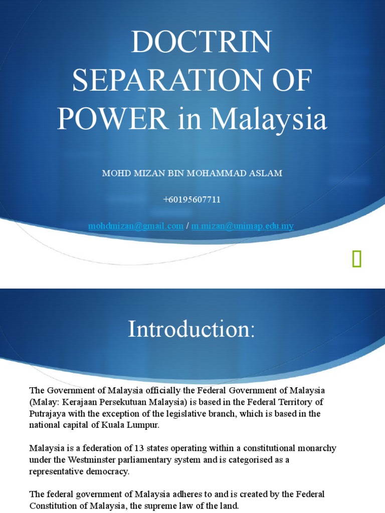 I will draw on the australian experience to show the convergence and divergence in the operation of aspects of the judicial power in australia and malaysia. It must be celebrated as it continues a line of recent cases that have stood up to defend the sanctity of the doctrine of separation of powers in malaysia and is testament to the fact that our judiciary is slowly regaining its confidence to stand up as the bulwark of our civil liberties and to assert its independence. However, in malaysia, the power is overlapping between legislative and. The mere separation of powers between the three organs is not sufficient for the elimination of the dangers of arbitrary and capricious government. The concept of 'separation of powers' is not so difficult either.